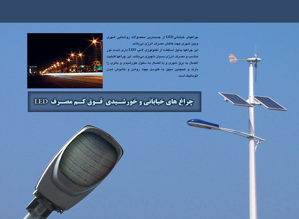 شرح : چراغ خیابانی LED تولید شده با جدیدترین تکنولوژی روز دنیا -پک سری- مبتنی بر LED در ولتاژهای مختلف 220 و 12 ولت و دومنظوره ، که یک چراغ را میتوان هم با برق 220 ولت روسن نمود و در زمان قطع برق نیز میتوان با برق 12 ولت بصورت اضطراری